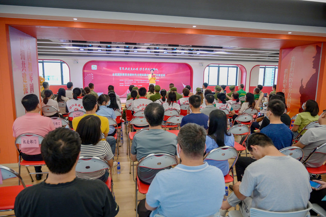 5月18日下午,全民國防教育進新時代文明實踐中心宣講交流活動在中山市民眾街道新時代文明實踐中心舉行,退役軍人代表、基層群眾、村干部以及受邀出席的中國人民解放軍91878部隊、69316部隊官兵代表等200余人參加活動。  活動現(xiàn)場。記者 易承樂 攝