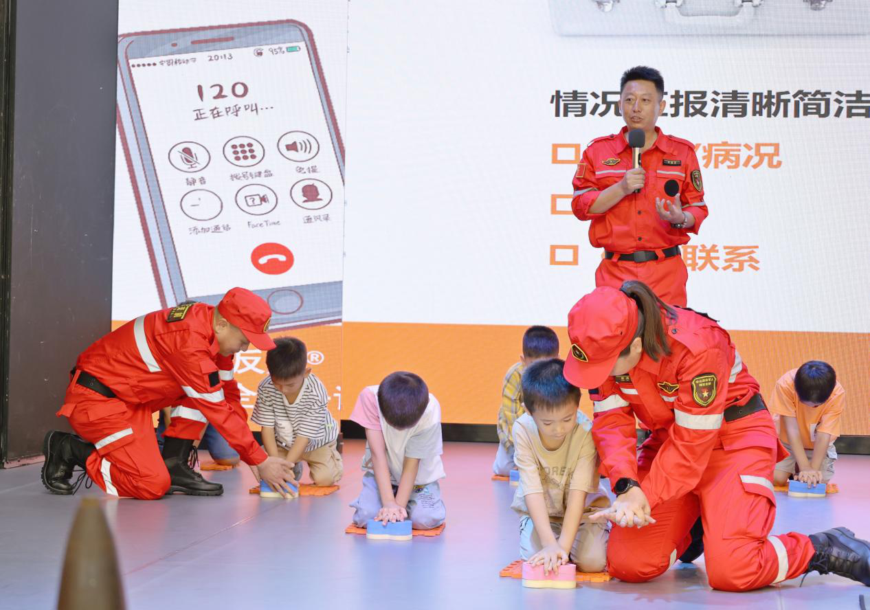 中山市擁軍支前紅旗服務(wù)隊隊長孫宏寧通過安全教育宣傳片、實際案例、情景模擬、互動問答等形式,從應(yīng)急救護、如何進行心肺復(fù)蘇、120呼叫需要提何種信息等與青少年生活息息相關(guān)的內(nèi)容為小營友們講授暑期“安全第一課”,讓安全意識、安全技能深入到在場每位學(xué)生、每個家庭,希望小營友們在快樂過暑假的同時安全不“放假”。  國防教育現(xiàn)場。
