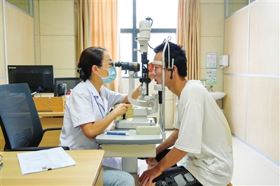 醫(yī)生對應征青年進行視力檢查。記者 易承樂 攝