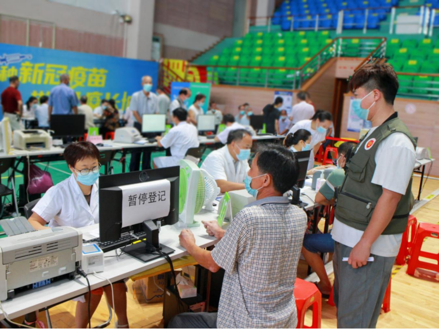 東鳳鎮(zhèn)臨時接種點現(xiàn)日均接種500劑次,在臨時接種點現(xiàn)場,等待接種的重點優(yōu)撫對象佩戴好口罩,在工作人員和退役軍人志愿者的指引下有序進(jìn)入接種點。 志愿者們依次指引重點優(yōu)撫對象們?nèi)サ阶稍兊怯泤^(qū)、量血壓區(qū)、接種區(qū)和留觀區(qū),逐個完成新冠疫苗接種。