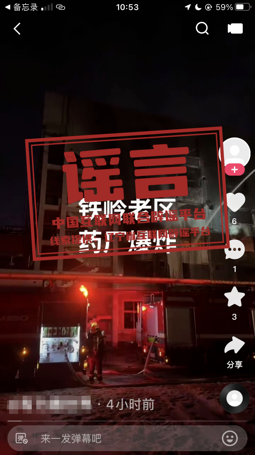 真相:近日,一網(wǎng)民在短視頻平臺(tái)發(fā)布信息稱“鐵嶺市銀州區(qū)某藥廠發(fā)生爆炸”,引發(fā)關(guān)注。經(jīng)遼寧省鐵嶺市公安局新城分局調(diào)查核實(shí),某工廠當(dāng)日下午一車間起火,相關(guān)部門迅速到場(chǎng)妥善處置,未發(fā)生爆炸。網(wǎng)民常某在未經(jīng)核實(shí)的情況下,將不實(shí)信息發(fā)布至網(wǎng)絡(luò)平臺(tái),造成不良社會(huì)影響。目前,公安機(jī)關(guān)已依法對(duì)常某予以行政處罰。(來源:@平安鐵嶺)