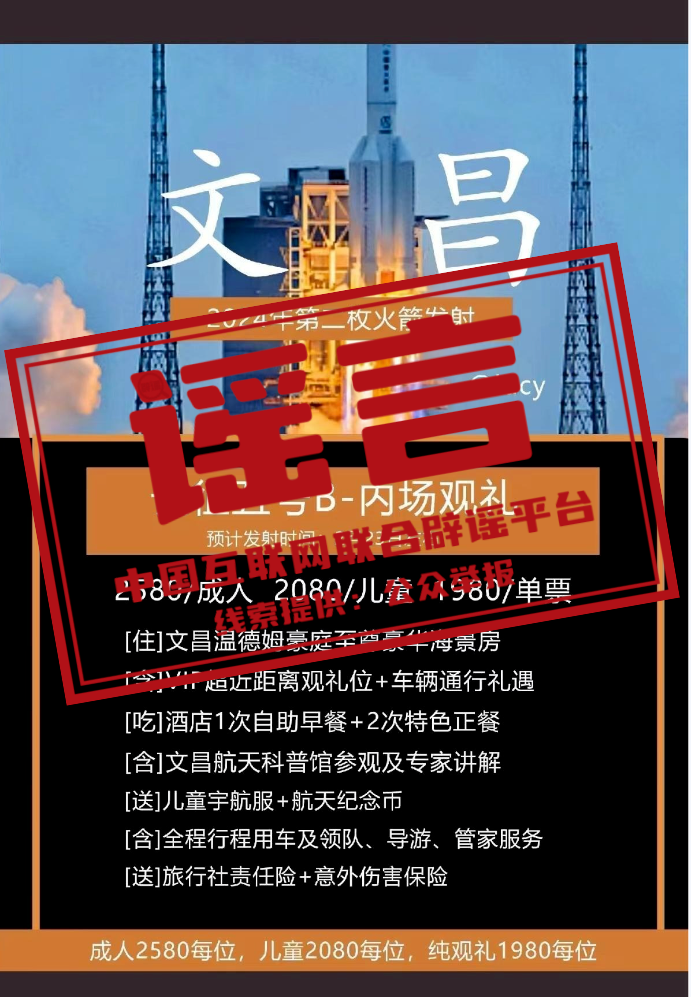 辟 謠 售賣“文昌航天發(fā)射場內(nèi)場火箭發(fā)射觀禮門票”系虛假宣傳