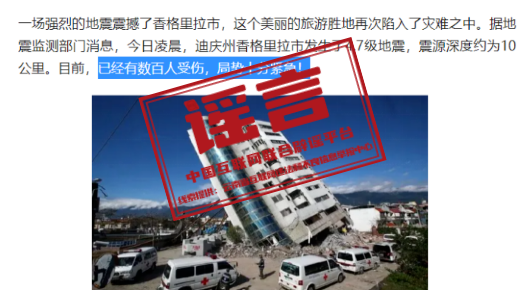 謠   云南迪慶香格里拉市4.7級地震中,有數(shù)百人受傷?