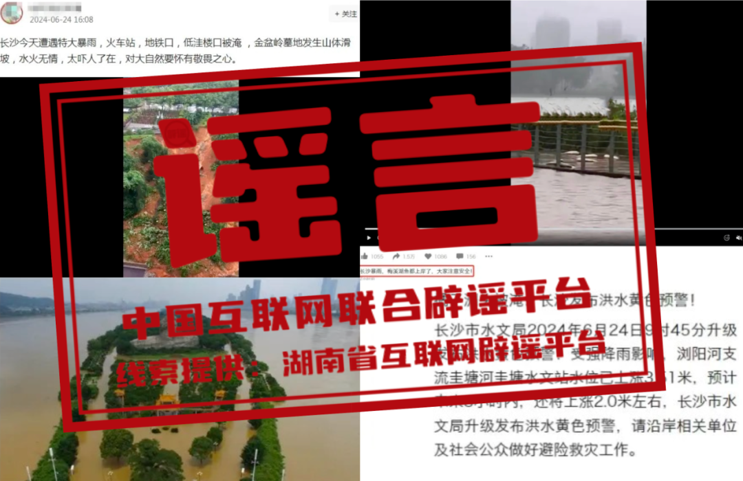 謠 言 長沙暴雨致橘子洲頭被淹?金盆嶺烈士陵園坍塌?梅溪湖的魚都上岸了?
