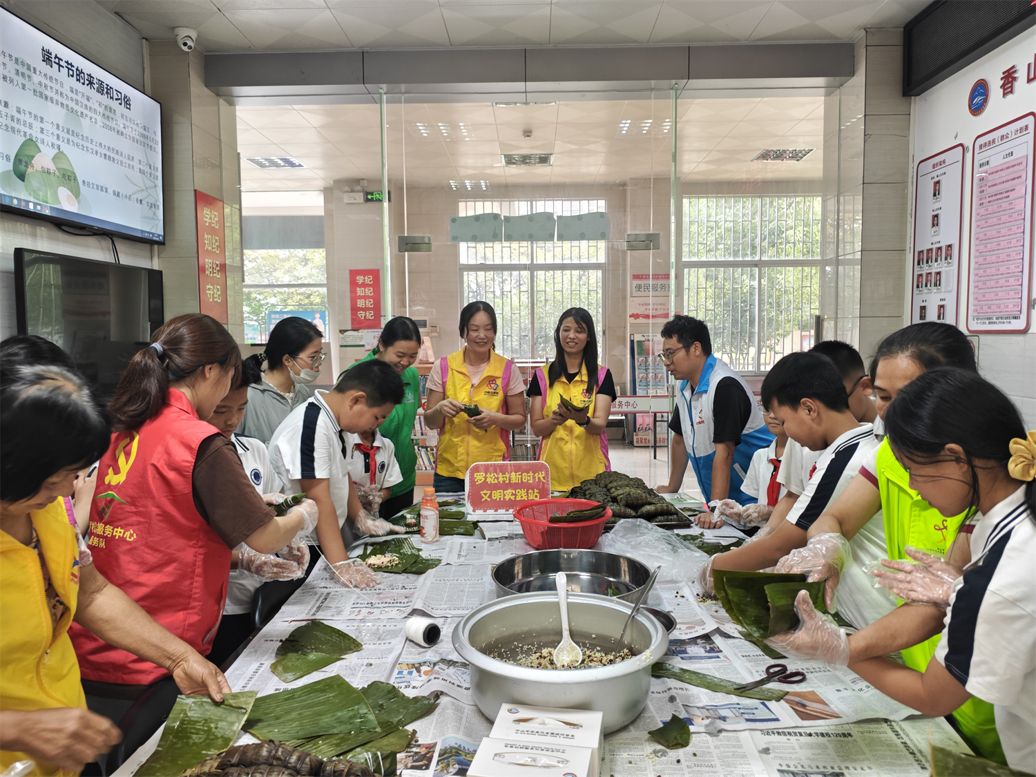 活動伊始,禁毒社工向學生們展示仿真毒品模型和禁毒宣傳單張,用簡單易懂的語言向學生們介紹毒品的種類、危害以及防范方法。隨后,工作人員講授了端午節(jié)的來源及習俗,并教授學生們?nèi)绾伟兆?,學生們紛紛拿起粽葉跟著工作人員忙活起來,不一會兒,一只只飽滿的粽子便呈現(xiàn)了。